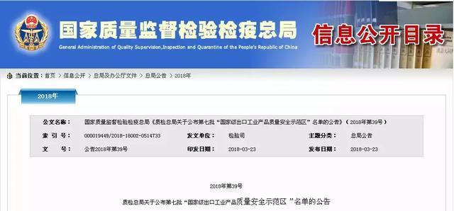第七批“高级出口工业产品质量安全示范区”名单公布,张家口市万全区高级出口食品农产品质量安全示范区续延复审并通过考核。