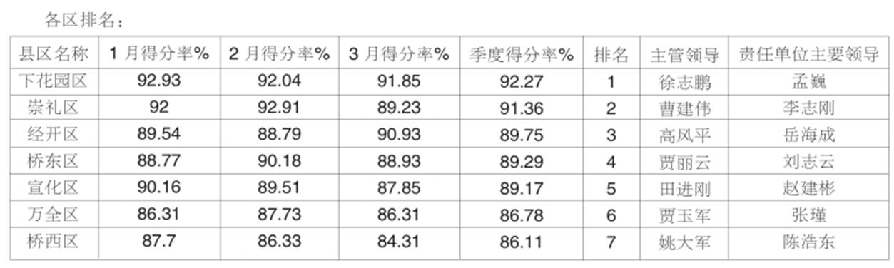 张家口城市管理绩效评价一季度排名来了,下花园名列排名前列!