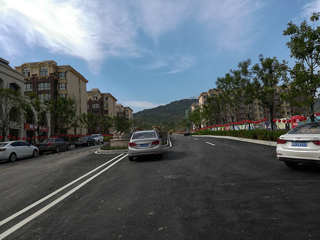 翡翠一期洋房、宽阔的马路、远处的轿顶山,果然不同凡响。