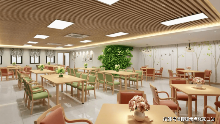 食材由正规供应商直供,每日检测农药残留;膳食搭配遵循“三餐两点”模式,正餐提供3种主菜、2种素菜与1种汤品,加餐以水果、酸奶为主,兼顾口味与健康。用餐环境宽敞明亮,桌椅高度适配长者需求,营造温馨的用餐氛围。
