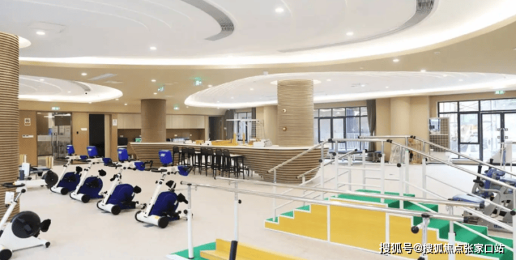 护理院以“零障碍通行”为核心动线规划原则,1.8米宽的走廊两侧设置双层扶手,地面采用防滑系数高于国标的PVC材质,确保轮椅与助行器通行无阻。公共区域采用“回字形”动线设计,减少长者行走距离,并通过色彩分区——浅蓝代表休闲区、米黄代表活动区——帮助认知症长者辨识方向。走廊转角处均采用圆弧设计,避免磕碰风险;户外长廊座椅配备人体工学靠背,搭配太极推手器与漫步机,让长者在散步间隙也能随时舒展筋骨。