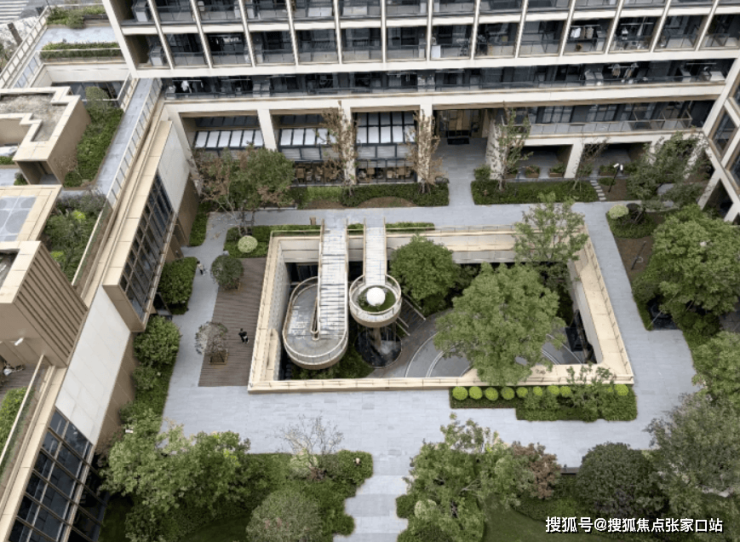 社区以“垂直森林”理念打造1.2万平方米立体园林,底层种植耐阴地被植物,中层搭配桂花、玉兰等芳香树种,顶层种植樱花、红枫形成季相变化。户外区域规划有园艺疗法花园、慢跑道及休闲凉亭,满足长者亲近自然的需求。中央草坪设置可移动座椅,屋顶花园铺设塑胶步道,环形跑道沿途设置休憩亭与健身器械,形成“运动-观景-休憩”的闭环动线。