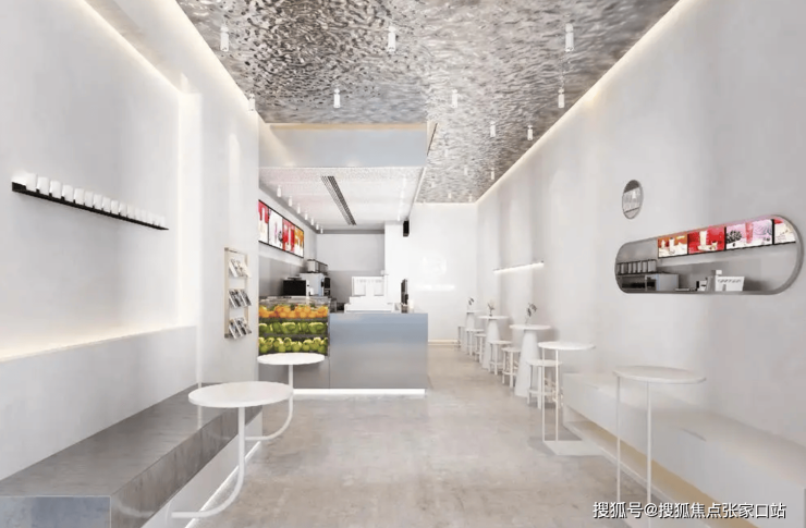 空间利用:小型奶茶店空间有限,因此需充分利用每一寸空间。可采用嵌入式家具、悬挂式储物架等方式增加储物空间,同时保持店内整洁有序。