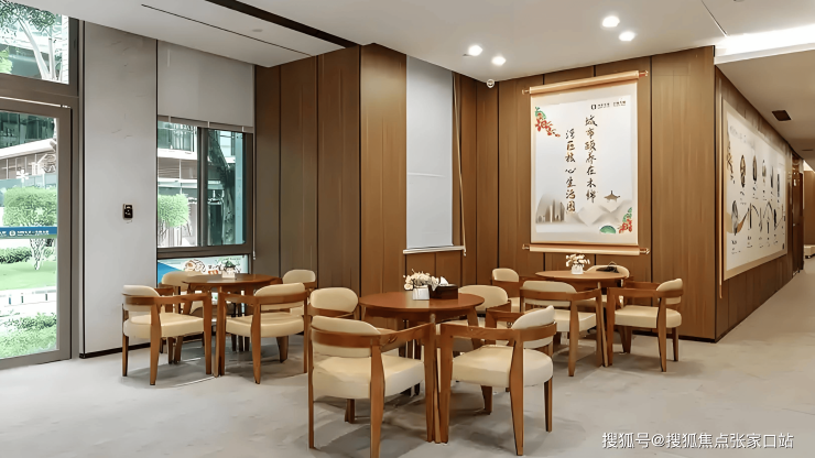 居住空间:提供单人间(约48㎡)、一室一厅(约85㎡)、两室一厅(约105㎡)三种主力户型,均采用纯南向布局,配备180度落地窗与明火厨房,满足独居、夫妻同住及亲友探访需求。房间内采用弧角家具、感应夜灯、智能门磁系统等适老化设计,跌倒事故率同比下降40%;卫生间配备智能马桶、暖风机及自动升降晾衣架,紧急呼叫系统实现全屋覆盖。