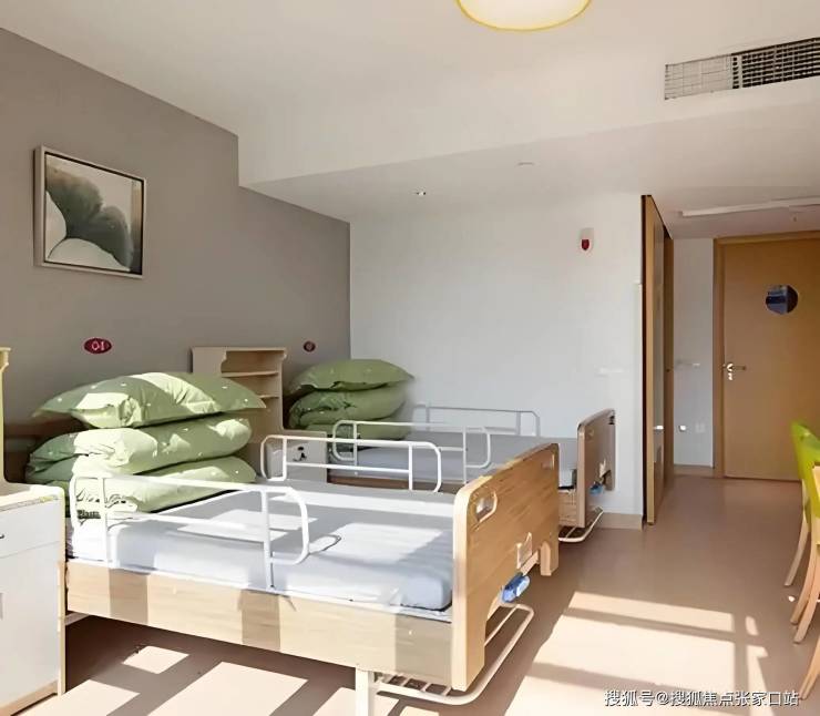 房间采用暖色调装修,配备可调节护理床、独立卫生间与紧急呼叫系统。例如,床头设置氧气接口与吸痰装置,应对突发呼吸问题;卫生间安装L型扶手与防滑地胶,降低跌倒风险;窗户限位器防止长者攀爬。
