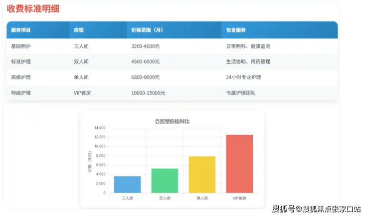 居住空间:单人间面积18-22平方米,配备独立卫浴、无线网络及智能照明系统;双人间与三人间标配衣柜、床头柜、彩电及空调,床头设紧急呼叫装置,卫生间安装低位洗手台与防滑淋浴凳;