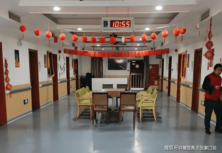公共区域:室外花园种植四季花卉,搭配休憩凉亭与无障碍步道;室内设多媒体放映厅、手工坊及心理咨询室,墙面采用圆角设计,走廊设置双层扶手;