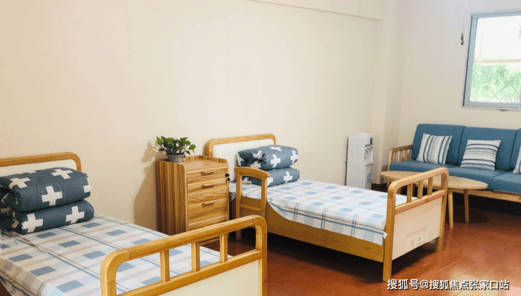 院内分设自理、半失能、失能及认知症专区,房型包括单人间、双人间、三人间及多人间。单人间含独立阳台、智能卫浴设备;双人间配备独立卫浴、智能呼叫系统及防滑地胶;认知症专区采用怀旧疗法场景设计,墙面装饰老上海风情照片,配备防走失定位系统及多感官刺激设备。所有房间均铺设防滑地板、安装扶手,卫浴间配置恒温淋浴系统与折叠助浴椅,确保居住安全。