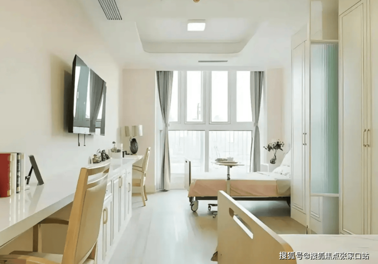 所有房型均采用南向布局,配合大面积落地窗设计,每日自然采光超8小时。单人间配备独立卫浴与智能护理床,防滑地胶、双层扶手及紧急呼叫按钮覆盖公共区域;双人间通过1.2米高隔断划分睡眠区,兼顾隐私与社交需求。
